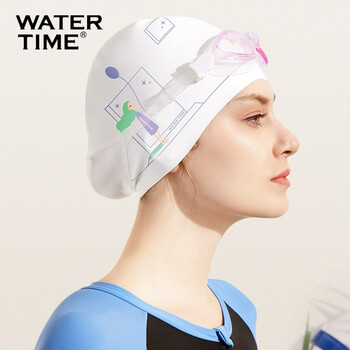 WATERTIME/水川 防水护耳硅胶抗氯泳帽女专业长发大号不勒头印花游泳帽