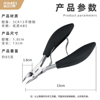 金达日美 RIMEI 甲沟专用指甲刀不锈钢鹰嘴钳嵌甲工具黑色 LPE516