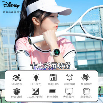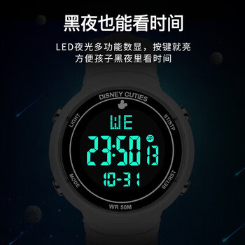 迪士尼(Disney)学生手表女初高中生数显防水电子表多功能夜光运动手表开学礼物