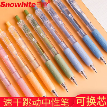 白雪(snowhite)G-202速干按动中性笔学生用莫兰迪色清新灰外观小清新子弹头0.5mm黑色墨水12支/盒