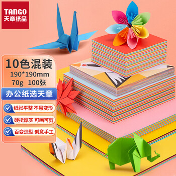 天章 (TANGO)【老师推荐】100张19*19cm彩纸送教程手工折纸 10色方形儿童手工DIY折剪纸美术绘画涂鸦软卡纸 70g