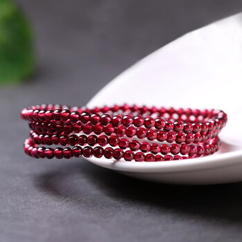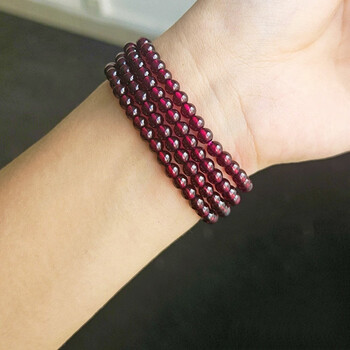 珠宝首饰---水晶/玛瑙/朱砂---手镯/手链/脚链石玥珠宝(SHIYUEZHUBAO)精品4-4.5mm酒红石榴石手链
