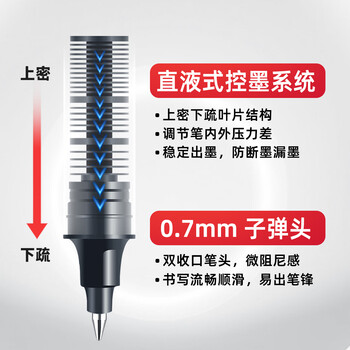 白雪(snowhite)签字笔直液笔0.7mm中性笔速干练字笔直液式走珠笔书法粗笔 黑色12支/盒 PVN-167