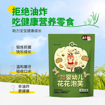 艾唯倪(ivenet)婴幼儿花花泡芙辅食磨牙饼干宝宝零食6个月以上婴儿零食南瓜味20g
