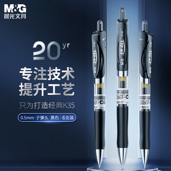 晨光(M&G)文具K35/0.5mm黑色中性笔 按动笔 经典子弹头签字笔 办公水笔 6支/袋AGPK3523