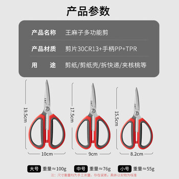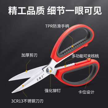 王麻子剪刀家用 不锈钢厨房剪纸裁缝工业剪子 多功能尖头中号剪刀