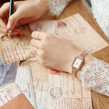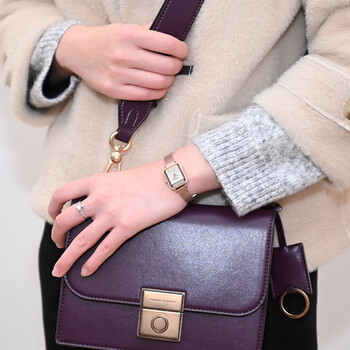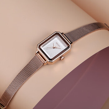 聚利时(Julius)手表女简约韩版小方盘网带小众石英防水女士手表玫瑰金JA-1223A