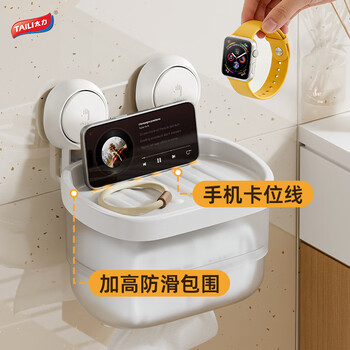 太力吸盘卫生间纸巾盒浴室厕所壁挂抽纸盒厕纸架卷纸架置物防水免打孔