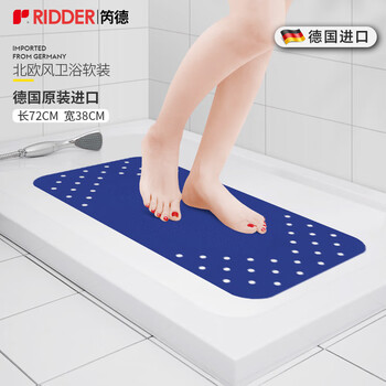 RIDDER德国进口TPE浴室防滑垫 卫生间止滑地垫脚丫镂空深蓝38*72