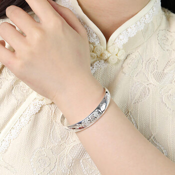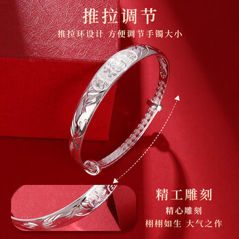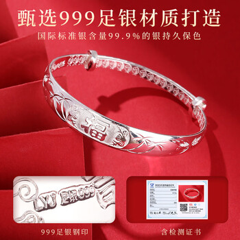 老银匠s999足银手镯祥瑞福字手镯多款可选妈妈款送长辈老人婆婆礼物