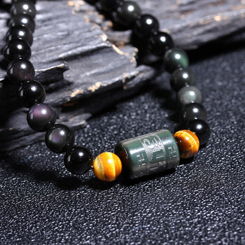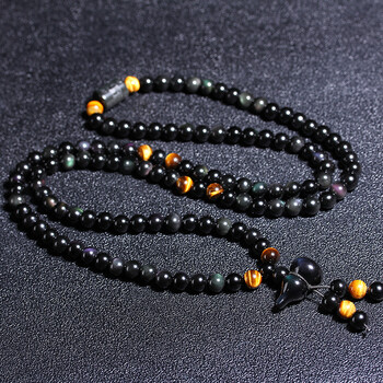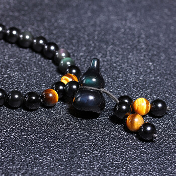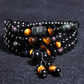 慈灵阁彩眼黑曜石手链108颗佛珠黑水晶手串本命年礼物饰品男款8MM