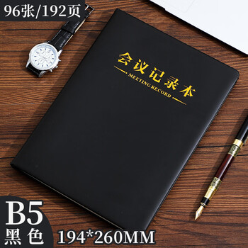 嘉然恒会议记录本加厚笔记本子商务办公文具开会工作记事本皮质本子定制B5黑色
