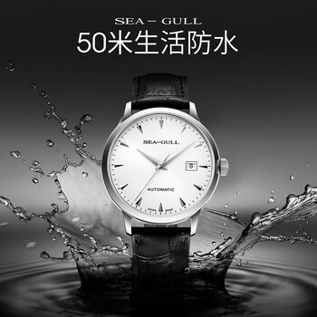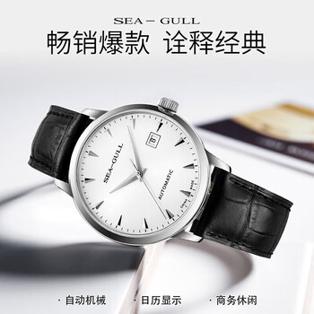 海鸥(SEAGULL)手表男士自动机械表 日历皮带男士手表 生日礼物6613白盘条钉