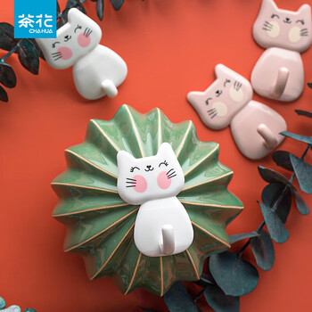 茶花挂钩 浴室门后粘钩 衣服毛巾挂钩 挂衣架强力粘贴钩 10支装
