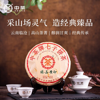 中茶茶叶普洱茶 生茶 七子饼茶臻品黄印200g 中华老字号