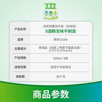 净安(Cleafe)泡沫抑菌 洗手液300ml*3瓶儿童家庭装玻尿酸季铵盐抑菌99.9%