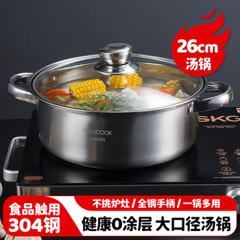美厨(maxcook)汤锅火锅 304不锈钢多用汤锅火锅26cm 燃气电磁炉通用 MCT8697