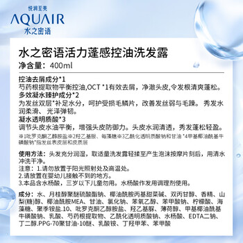 水之密语(AQUAIR)活力蓬感洗发水400ml男女控油去屑洗头膏蓬松柔顺洗发露