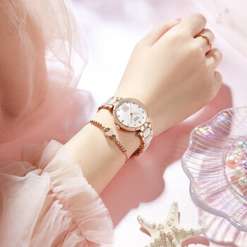 劳士顿(ROSDN)手表女士 花语系列陶瓷带日历防水十大品牌生日礼物送女友