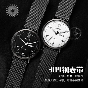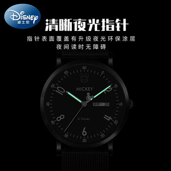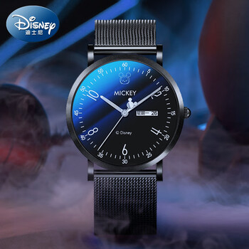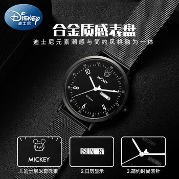 迪士尼(Disney)学生手表男简约防水双日历石英表初高中生青少年考试手表礼物