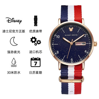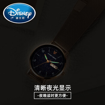 迪士尼(Disney)手表女款学生初高中女生高中生中学生初中生少女指针日历防水腕表