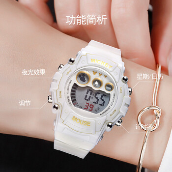 迪士尼(Disney)儿童手表女生防水运动电子表夜光多功能学生手表 MK-15146W开学