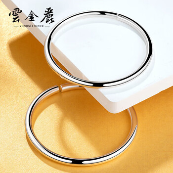云金丽银手镯999足银男女款经典情侣手镯素圈光面圆条开口民族风银镯子