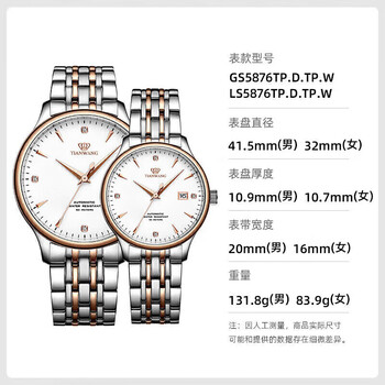 天王(TIAN WANG)情侣手表一对钢带防水机械腕表生日礼物GS&LS5876TP.D.TP.W