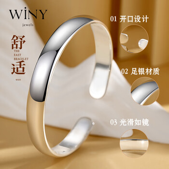 唯一(Winy)银手镯女款足银9999镯子素圈正品纯银饰品生日礼物送妈妈老婆女友
