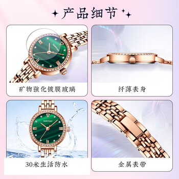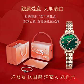 马克华菲(MARK FAIRWHALE)美人鱼手表女士十大名表小绿表盘气质轻奢国表腕表生日礼物送女友