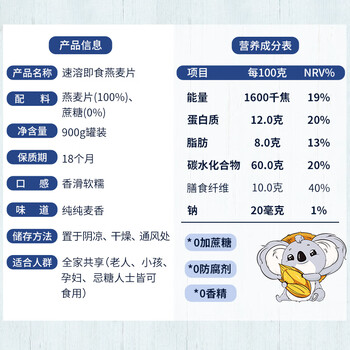 金日禾野即食燕麦片900g罐装 营养早餐无添加蔗糖冲饮谷物麦片代餐免煮