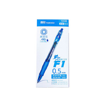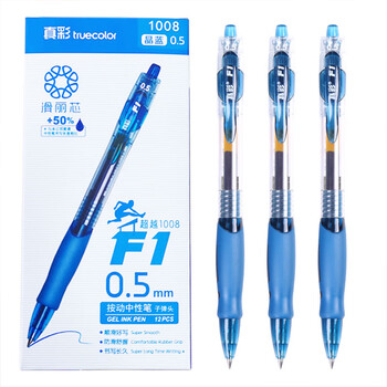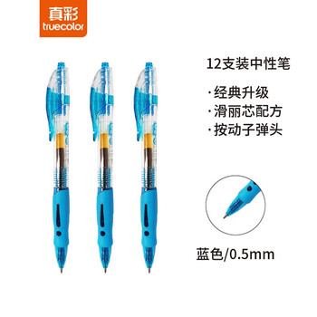 真彩(TRUECOLOR)1008滑丽芯按动中性笔0.5mm晶蓝色子弹头商务办公签字笔水笔学生考试文具用品会议记录笔 12支/盒