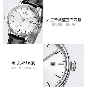 依波(EBOHR)手表女大师系列休闲生日节日礼物白面皮带女士机械表36170142