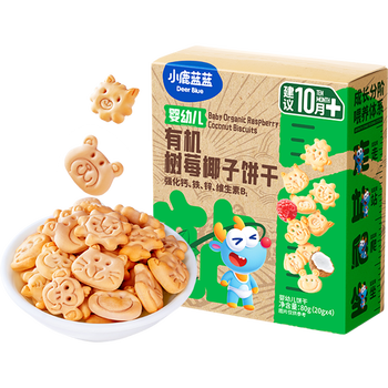 小鹿蓝蓝婴幼儿有机树莓椰子饼干宝宝儿童零食强化钙铁锌80g 10月+