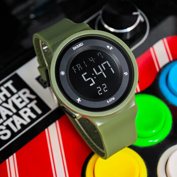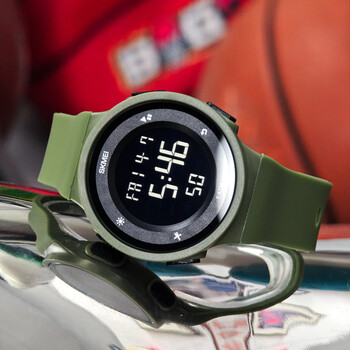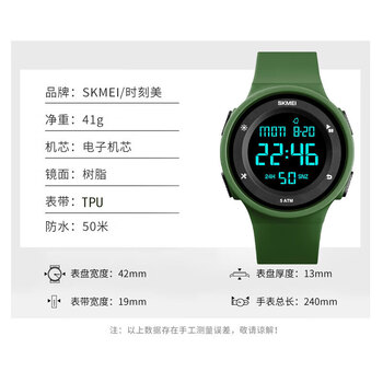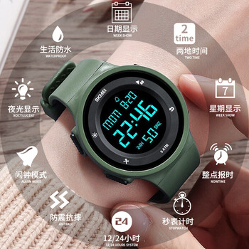 时刻美(skmei)运动电子表防水青少年初中高中学生儿童手表看时间闹钟男生1445绿