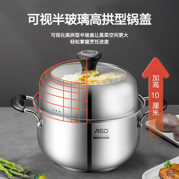 爱仕达(ASD)汤锅304不锈钢单层蒸锅 蒸煮一体炖汤锅22CM电磁炉燃气灶通用ZSB1