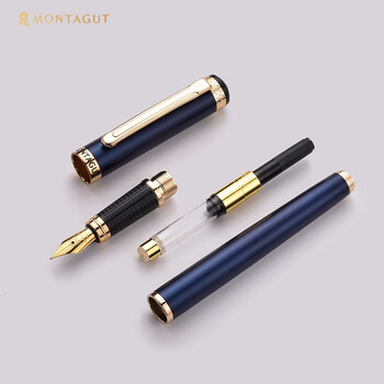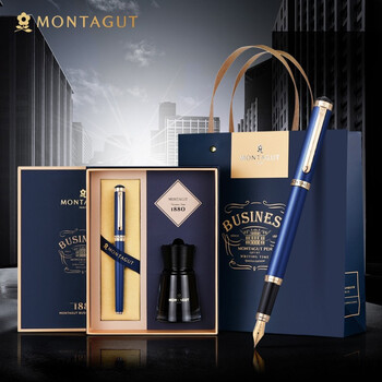 梦特娇(MONTAGUT)【马年礼物】钢笔墨水礼盒套装商务练字办公永恒系列金属蓝0.5MM
