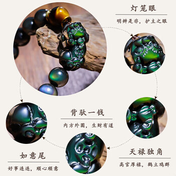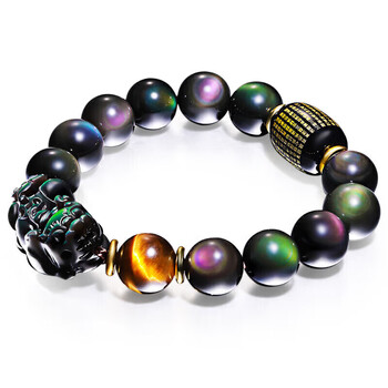 珠宝首饰---水晶/玛瑙/朱砂---手镯/手链/脚链石玥珠宝(SHIYUEZHUBAO)12mm彩眼天然黑曜石貔貅手串