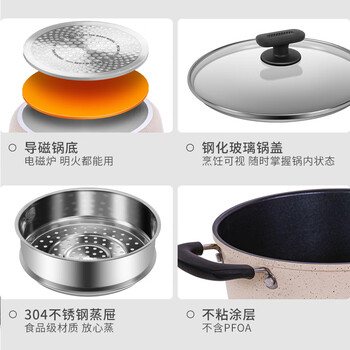 炊大皇汤锅易洁不粘锅煲汤炖煮熬粥汤奶锅24cm电磁炉通用缤纷B50229