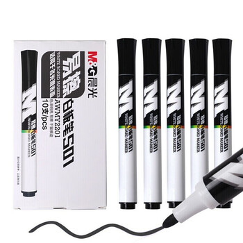 晨光(M&G)白板笔AWMY2201黑色易擦白板笔教师用水性笔黑板笔画板笔 单头 办公可擦记号笔 10支装