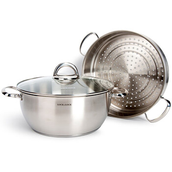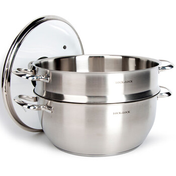 乐扣乐扣(LOCK&LOCK)不锈钢蒸锅 家用大容量蒸锅28CM二层蒸锅汤锅套装组合电磁炉锅具