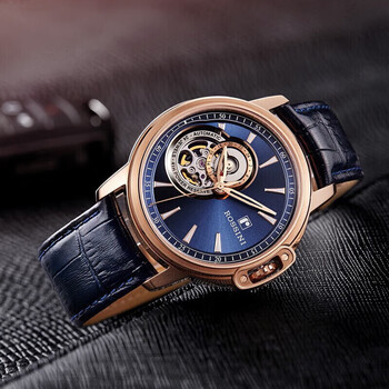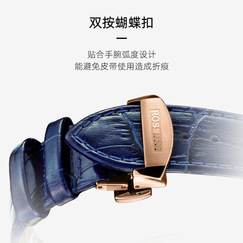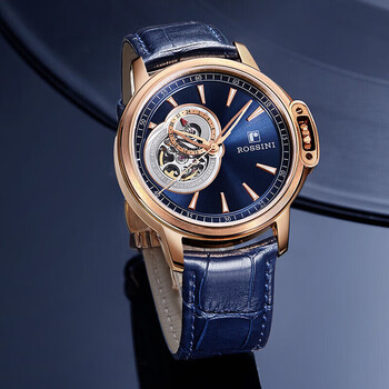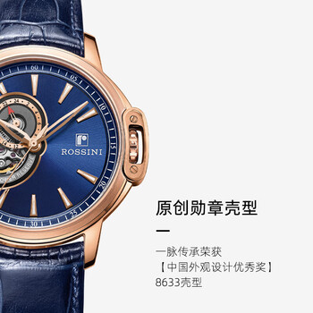 罗西尼(ROSSINI)手表男机械表勋章蓝盘皮带生日礼物送男友国表镂空经典防水 8633