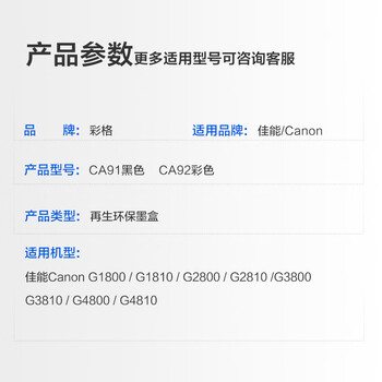 彩格适用CA91 CA92打印头适用佳能G1800 G2800 G3800 G4800 G1810 G2810 3810 G4810打印机喷头墨盒canon黑彩