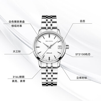 海鸥(SEAGULL)手表女士自动机械表 国民日历女士手表 生日礼物女表礼盒816.362L