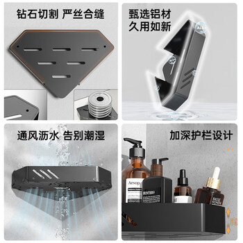 百字卫生间置物架加厚太空铝免打孔三角架浴室厕所转角置物架