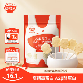 秋田满满 高钙酪蛋白牛奶棒棒糖 宝宝儿童零食营养糖果无添加白糖40g