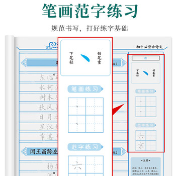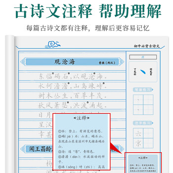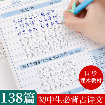 绍泽文化 初中生必背古诗文138篇课本同步楷书练字帖中学生临摹硬笔钢笔古诗词练字描红本
