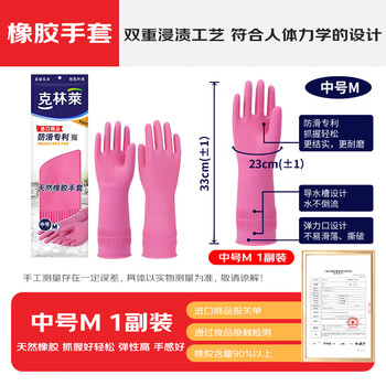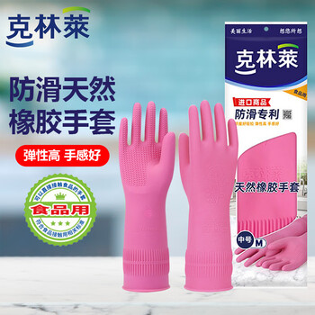 克林莱天然橡胶手套M中号红色长款越南进口防滑专利清洁家务厨房食品用