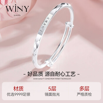 唯一(Winy)银手镯女款足银9999实心镯子生日礼物送妈妈老婆女友正品纯银饰品