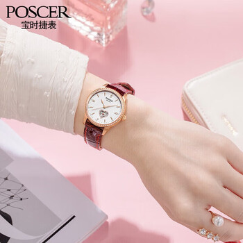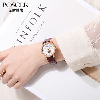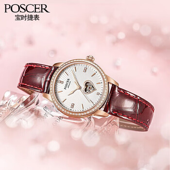 宝时捷(POSCER)手表女爱心镂空女士手表机械表女礼盒生日礼物送女友51022L.REW